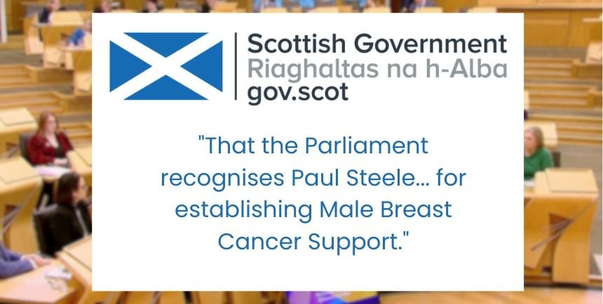 Male Breast Cancer Support was recognised with a motion presented in the Scottish parliament and endorsed by cross party support.